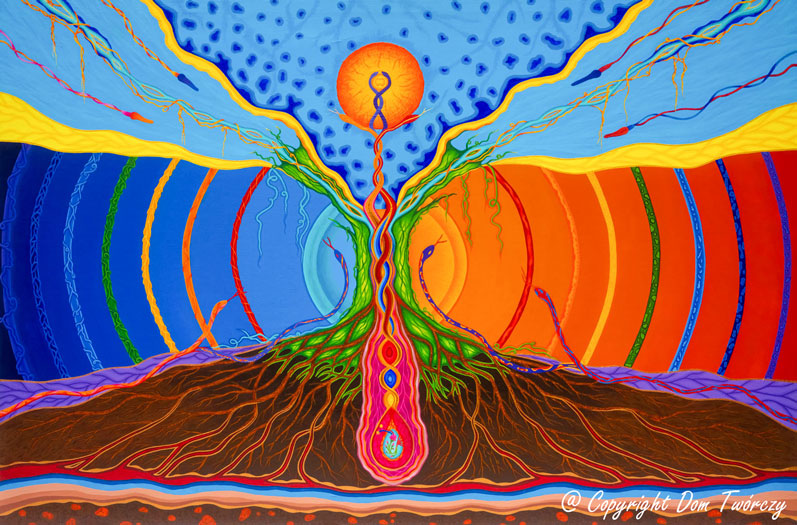 Drzewo, kotwica, antena. Totem czucia w połączeniu z ziemią, powietrzem, wodą/krwią, ogniem węża/słońca i eterem życia.